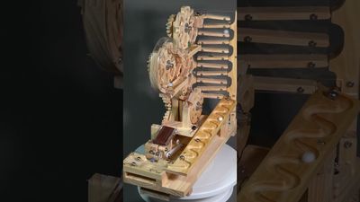 Watch the mechanism in motion - precision gears, smooth lifts, and endless marble flow